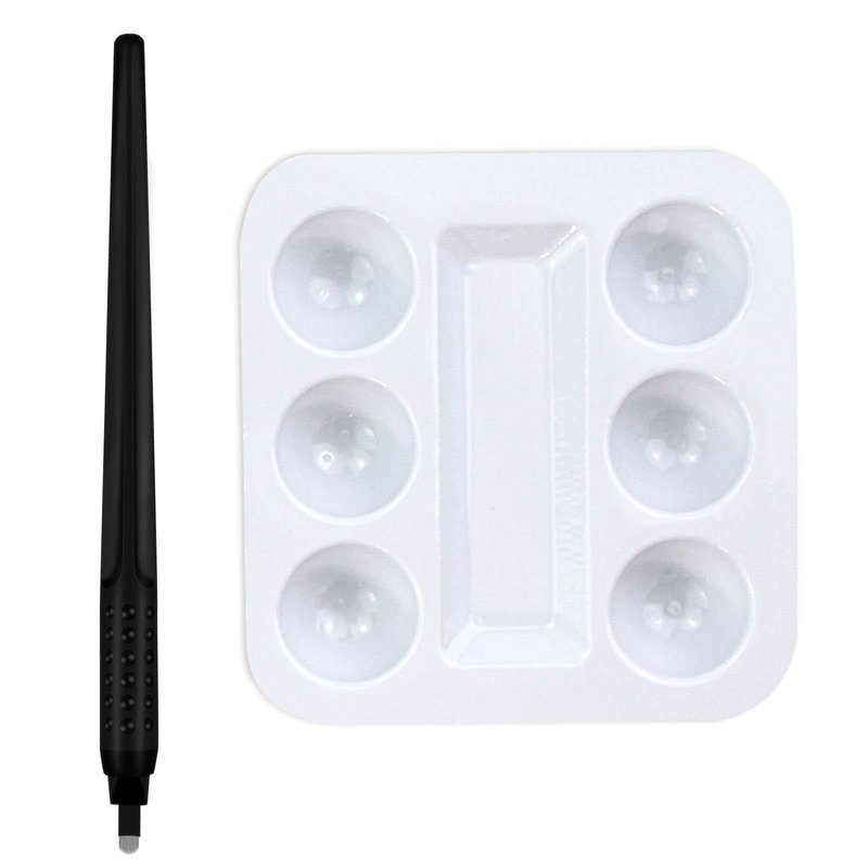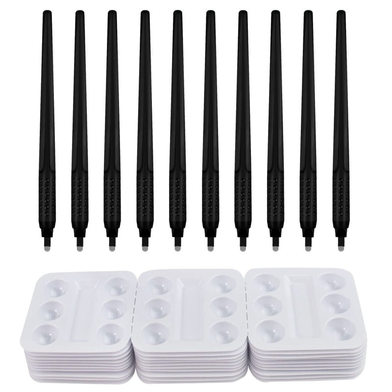 10pcs Black Disposable Microblading Pen Tool with 18U Blades 0.18mm and 30pcs Disposable Tattoo Pigment Tray Microblading Kit (Set 2)