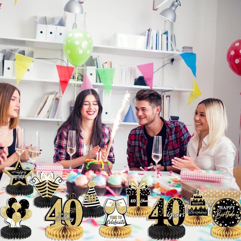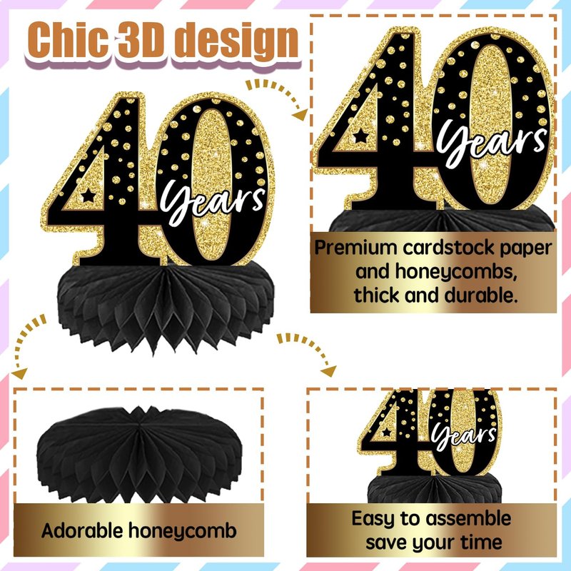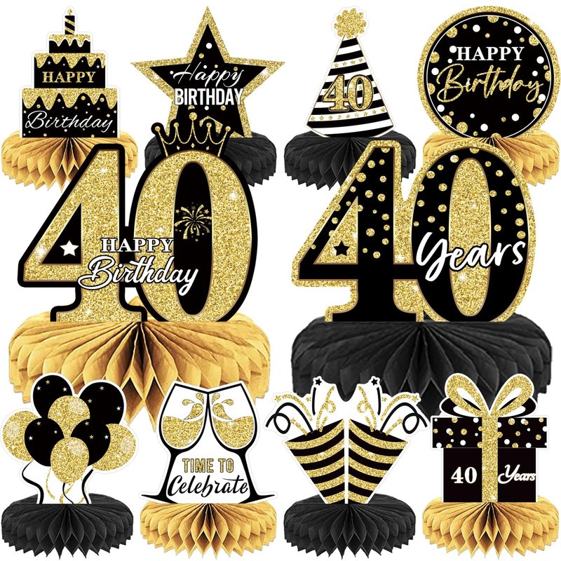 10PCS Black Gold 40th birthday decorations for Men and Women,40th birthday centerpieces for tables ,Happy 40th Birthday Centerpieces Tables Toppers,40th Birthday Table Sign Decor