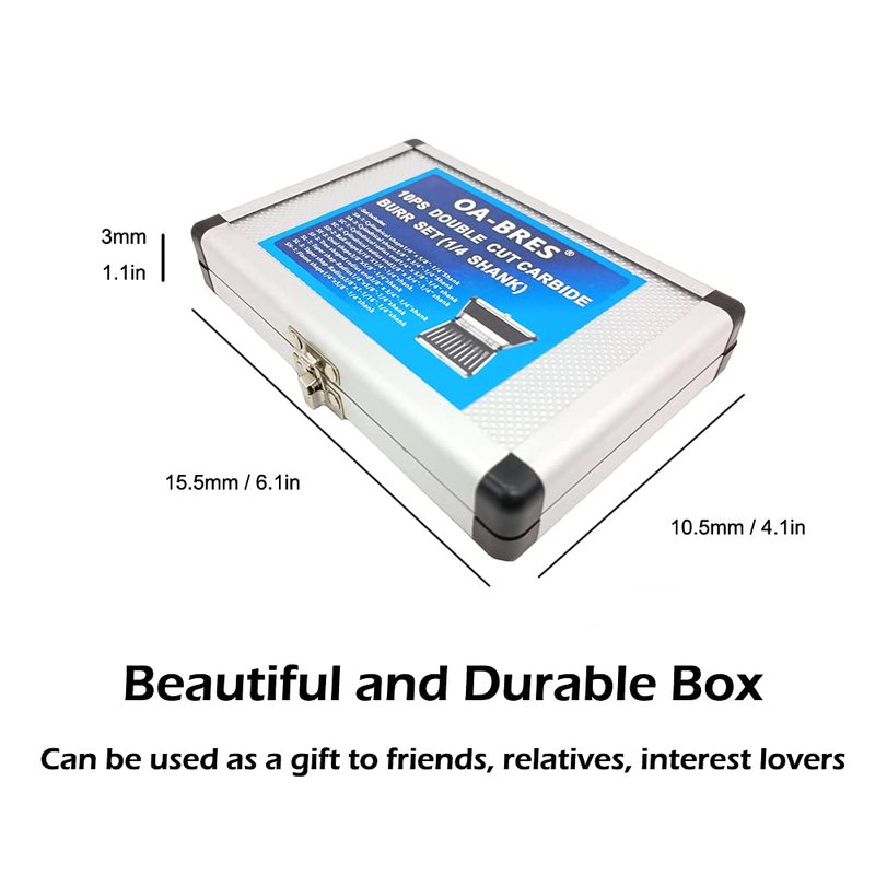 - 【PREMIUM MATERIAL】OA-BRES carbide burr bits are made of high quality heat-treated tungsten carbide that hardness can reach to HRC70, sharp and sturdy. 10 times higher than the durability of high speed steel cutter, 200 times more than the small wheel durability. Guaranteed to withstand the test of time. Comprehensive processing costs can be reduced by about 10 times.