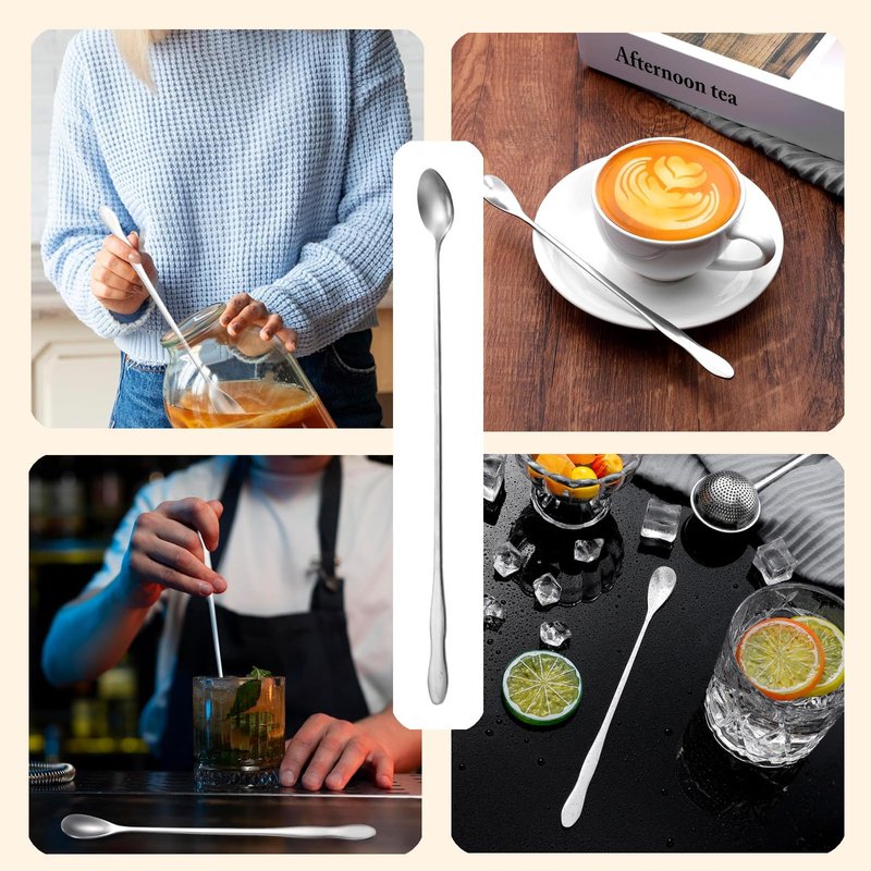 - Widely used: Our mixing spoon is an ideal choice for mixing drinks such as lemon water iced tea, milkshakes, homemade chocolate milk, cocktails, etc. It can even be used to mix sauces or hot dishes, and enjoy the must-have tool for cocktails on Sundays.