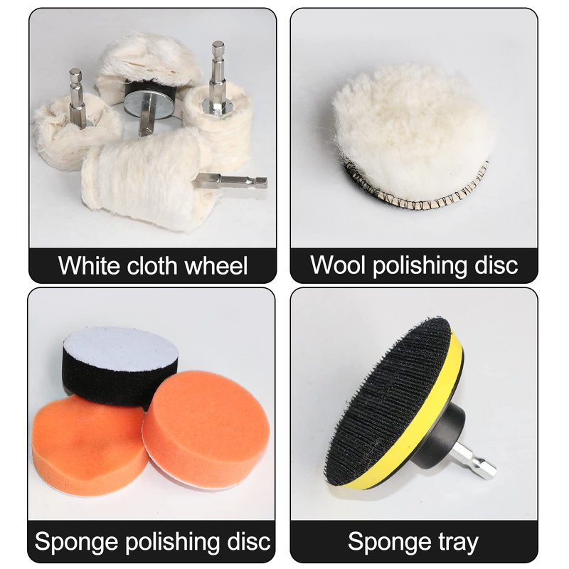 - Package include: Mushroom 1pc 2.75"(70mm);Conical 1pc:2"(50mm) ; cylindrical 1pc :1.57"(40 mm); Wheel 1pc 2"(50MM);3pcs sponge pads,1pc wool wheel pad,1pc backing plate,1pc shaft;total 10pcs