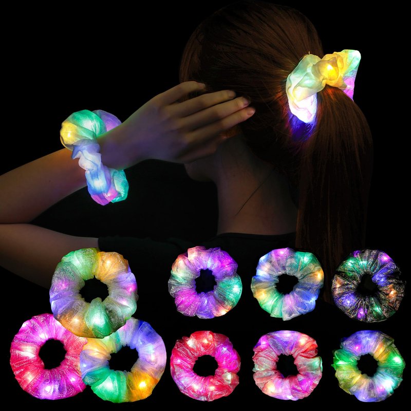 10Pcs LED Light Hair Scrunchies for Girls - Glow in the dark Hair Scrunchies, Light Up Scrunchy Hair Ties for Women, Glow Mermaid Party favors Supplies Rave Neon Accessories Festival Christmas