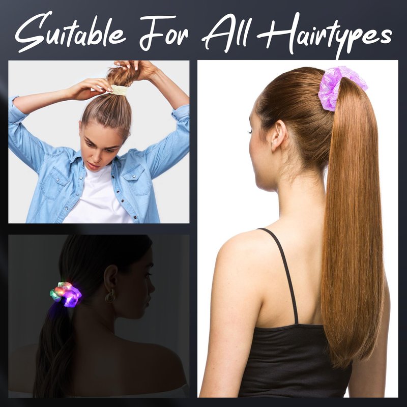 - 【A Perfect Gift】This light up hair scrunchies for girls will be amazing Gift for your girls, women, friend for birthdays, Neon Party Supplies, Christmas, Halloween and so on. Any reason you are not satisfied with glow scrunchies, please feel free to contact us and we will give you a satisfactory