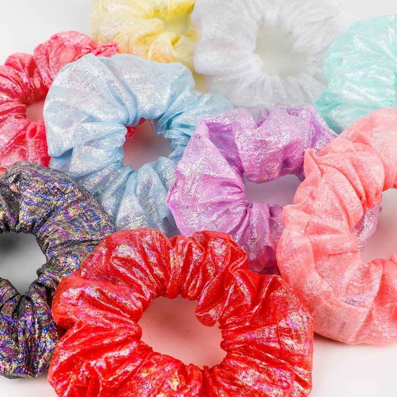 - 【10 Pack of Shiny Colors】This scrunchies for girls hair is Made of high-quality shiny sparkle holographic fabric and durable elastic bands, these scrunchie not only glow dark for party supplies, but also is kind of Shiny Metallic hair ties for girls. Easy to diy your own hairstyle.