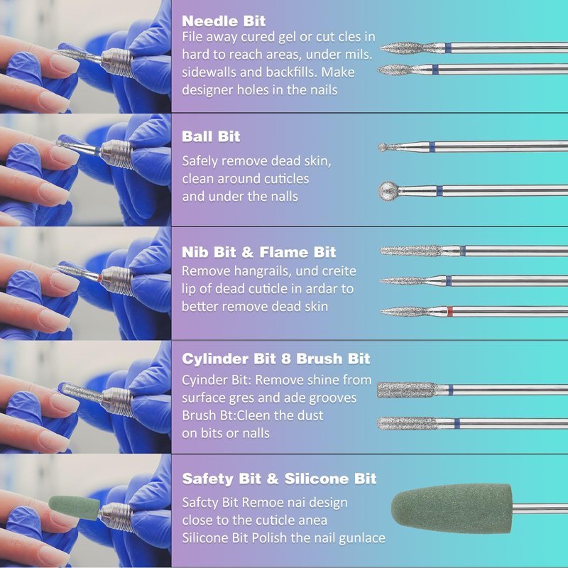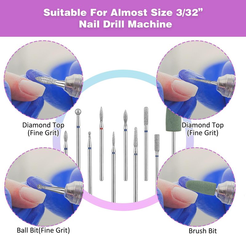 - 【Compatible Sizes】The drill bits nail tech is perfectly compatible with most electric nail drills that accept 3/32" bits and is easy to install, making it perfect for cuticle work and manicures.