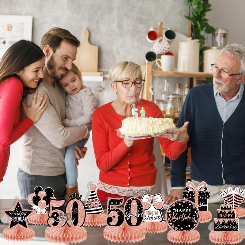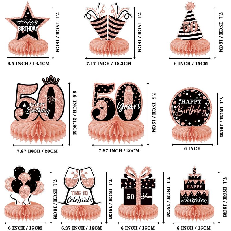 10Pcs Rose Gold 50th birthday decorations Honeycomb Centerpieces for women ,Happy 50th Birthday Centerpieces Tables Toppers Party Supplies,50th Birthday Table Sign Decor