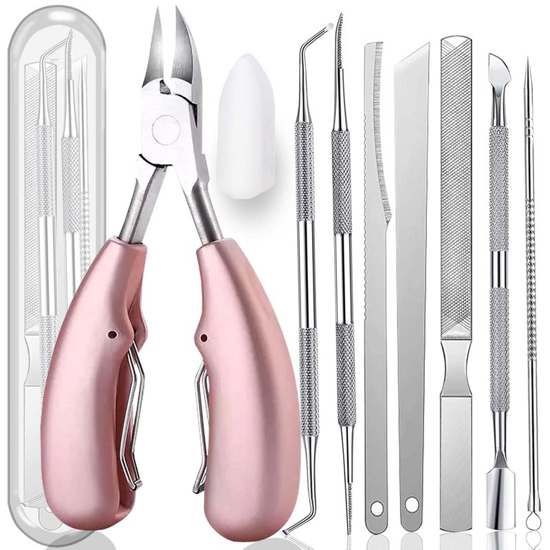 10PCS Toenail Clippers Tool, ingrown Nail Tool, Professional Thick & Ingrown Toe Nail Clippers for Men & Seniors(pink)
