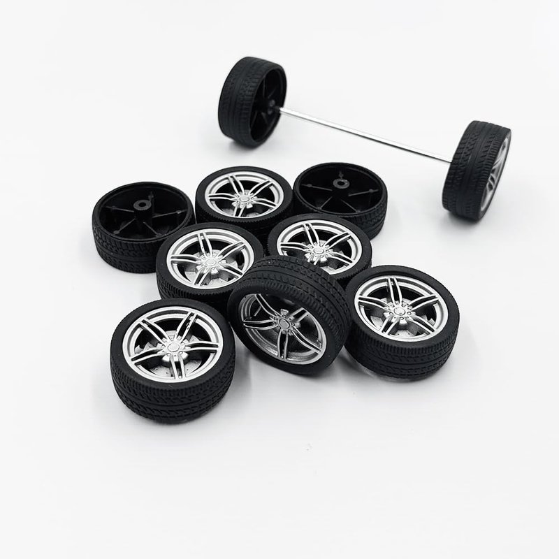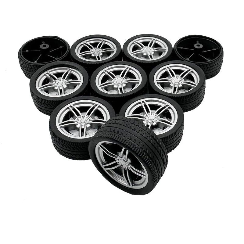 - Application:10PCS Model toy car wheels rubber tire wheels with metal shaft for rc car,truck,diy model toy wheel replacement parts,meet your diy project needs