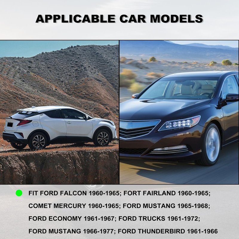 - Compatible With Ford Falcon 1960-1965; Mercury Comet 1960-1965; Ford Fairlane 1960-1965; Ford Truck 1961-1972; Ford Bronco 1966-1977; Ford Mustang 1965-1968; Ford Thunderbird 1961-1966.