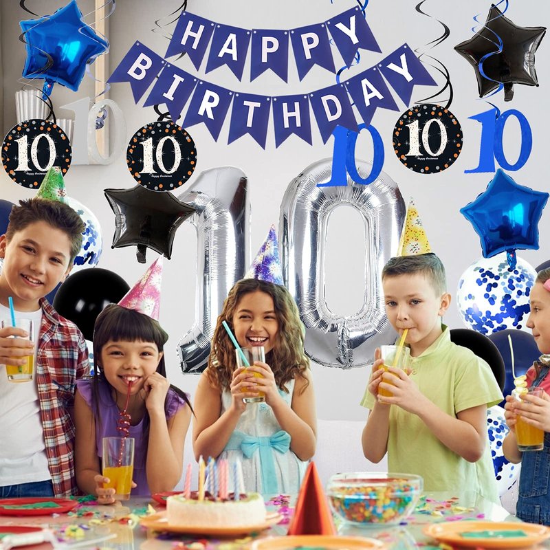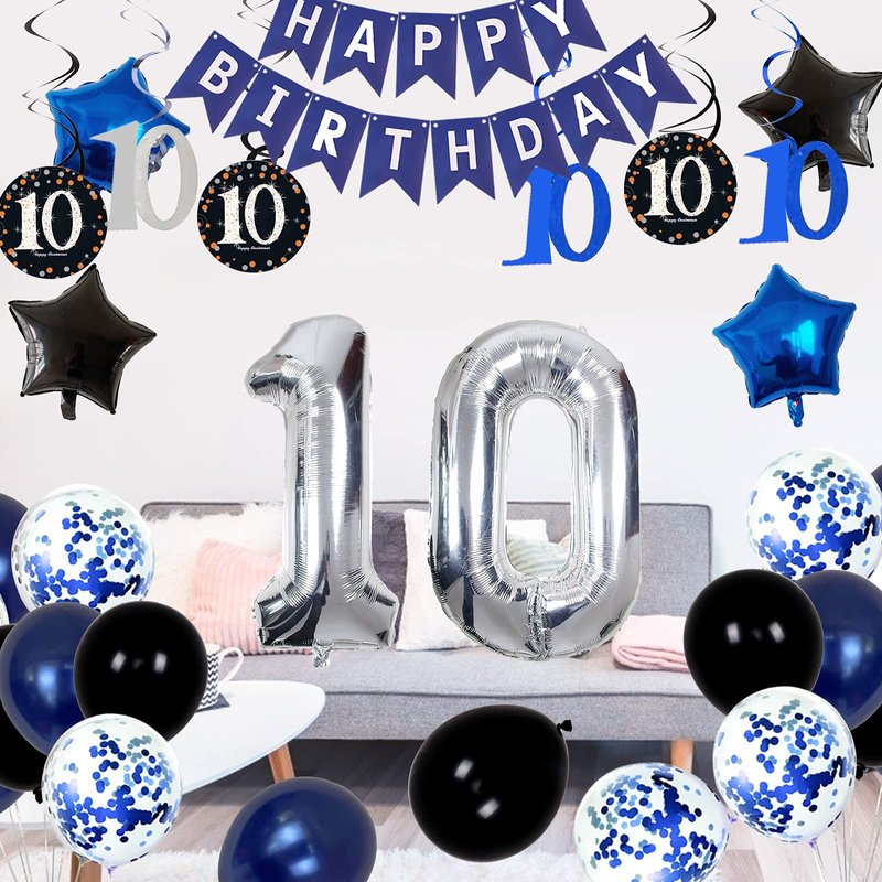 - 🎂TURN YOUR 10th BIRTHDAY EASILY: Get everything you need in one package, no longer to find the individual decor for your party. This party supplies uses blue and black as the theme will make you look like a pro more! Narrow the distance between you and your family.
