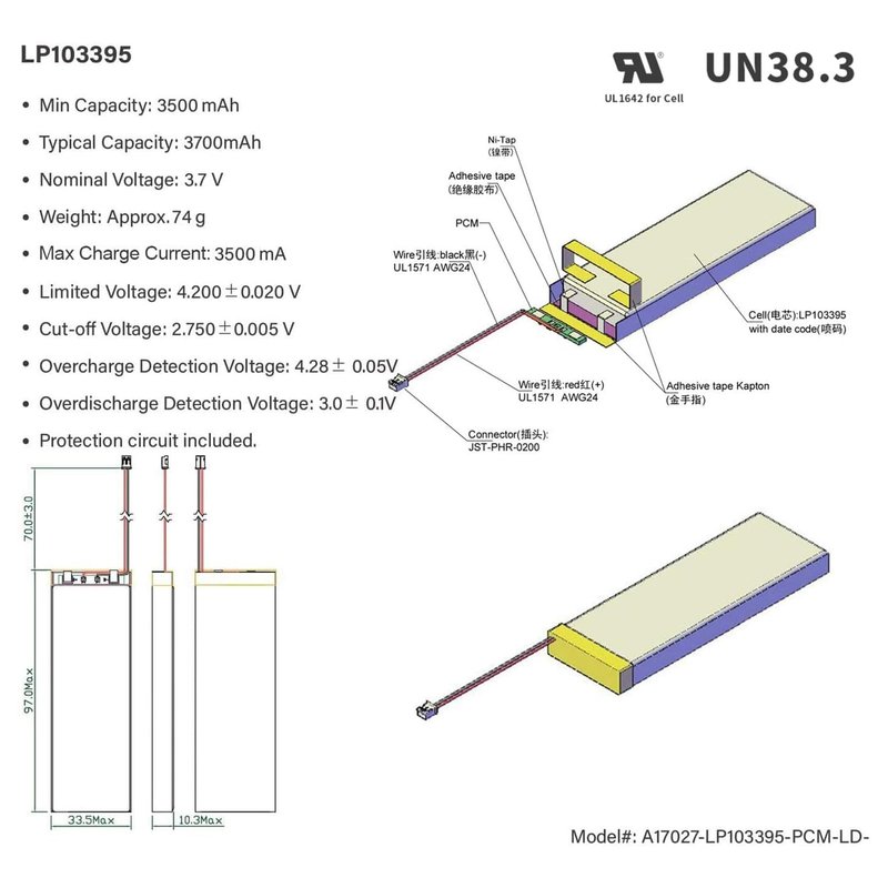 Typical capacity: 3700mAh, Min capacity: 3500mAh