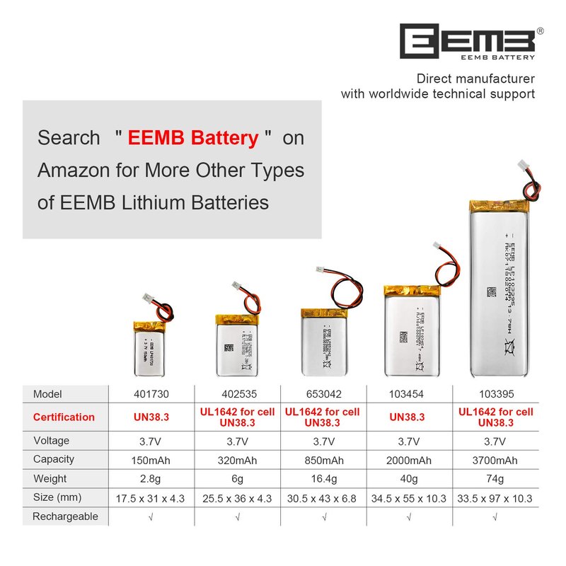 - CERTIFICATIONS—UN 38.3 compliant and UL certified for cell. More than 400 EEMB batteries are UL certified. Search "MH20555" on UL for all EEMB UL certification information.