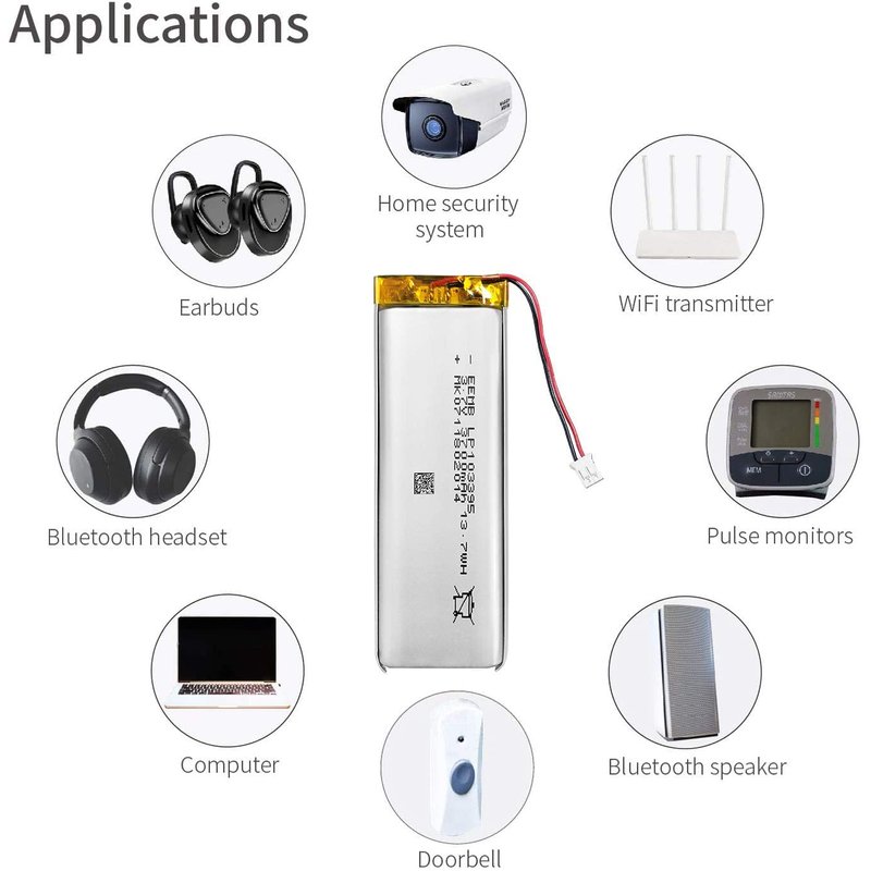 - APPLICATION—Suitable for bluetooth speaker, dash cam, keyboard and mouse, Wi-Fi enabled smart home systems, PDA and digital cameras, GPS, monitoring units, notebook computers, e-books, telematics, tracking devices, sleep management equipment, blood oxygen tracking equipment, pulse monitors.