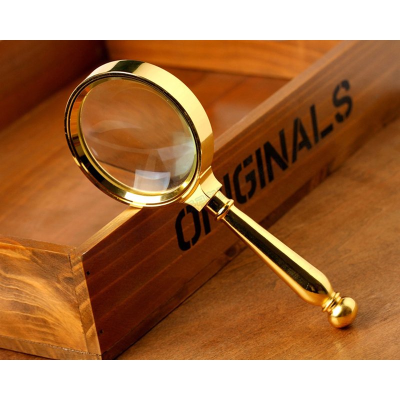 10X Handheld Magnifier with Metal Handle Golden,80mm Reading Magnifying Glass for Map,Newspaper,Documents,Labels,Failing Vision,Fire Starting,Jewelry,Crafts,Best Gifts for Seniors Kids