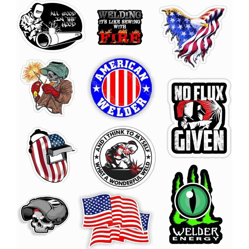 11 pcs Welder Stickers Set Welding Decals, 2 inches. Welding Helmet Welder Decal. Oilfield Trash Hard Hat Sticker
