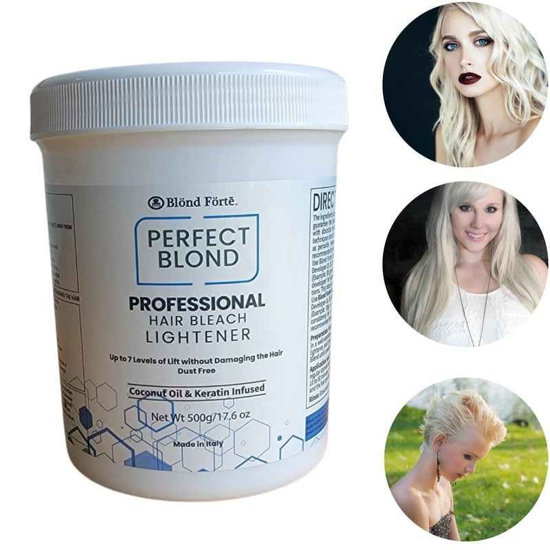This lightening formula is super easy to use and apply, the creamy consistency helps you achieve beautiful results across the full spectrum of blonde hair and the no drip premium power lightener formula will not damage your hair. The Quad-Lightening Complex ensures effective and consistent hair lightening. With this kit, you can successfully get your hair a few shades lighter or the compact and concentrated formula will lighten your hair up to 7 levels and the Anti-Yellow Molecules ensures a clear blonde result. If you've been searching around for the best hair bleach to use, then you have to consider using this Perfect Blond bleach kit for your perfect blond transformation. Blond Forte Perfect Blond Dust Free Premium Hair Lightener: Up to 6 - 7 levels of lift. Controlled and reliable lightening action. For brilliant blonde result with Protecting oil system to help lock in moisture leaving the clients’ hair shiny, healthy and resilient. An off-the-scalp lightening powder which can provide a fast lifting action up to 6 - 7 levels. Directions for off-scalp use: Mix 1 scoop Perfect Blond with 1 fl. oz. (30ml) of 10 to 40 volume Developer. With Anti-Yellow Molecules for clear blonde results Controlled and reliable lightening with up to 6 - 7 levels of lift Suitable for all applications and techniques Bleach - creamy consistency Perfect Blond helps achieve beautiful results across the full spectrum of blonde hair. As clients ask to lighten up for warmer weather, Perfect Blond empowers you to achieve beautiful results across the full spectrum of blond hair. It's dust free with a coconut fragrance. Variable mixing ratio provides an individual choice of consistency. Perfect Blond creates a new dimension in lightening and highlighting techniques. Contains anti-yellow molecules to help reduce orange/yellow undertones during lightening. For beautiful blonde results FOR PROFESSIONAL USE ONLY. MADE IN ITALY
