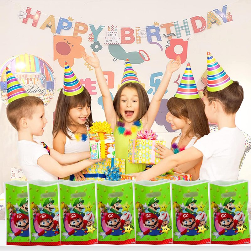 - Theme Birthday Decorations: A practical plastic candy bag is also an essential party item. It can also be used as a goodie bag. As long as you need it, it has all kinds of functions. And add this adorable upgraded mario themed kids stamps set to your shopping list! Keep your kids company with these cute little prints at game party events, and enjoy the perfect day