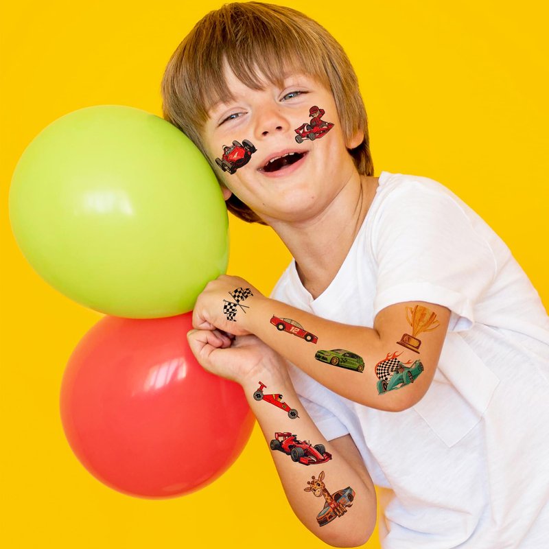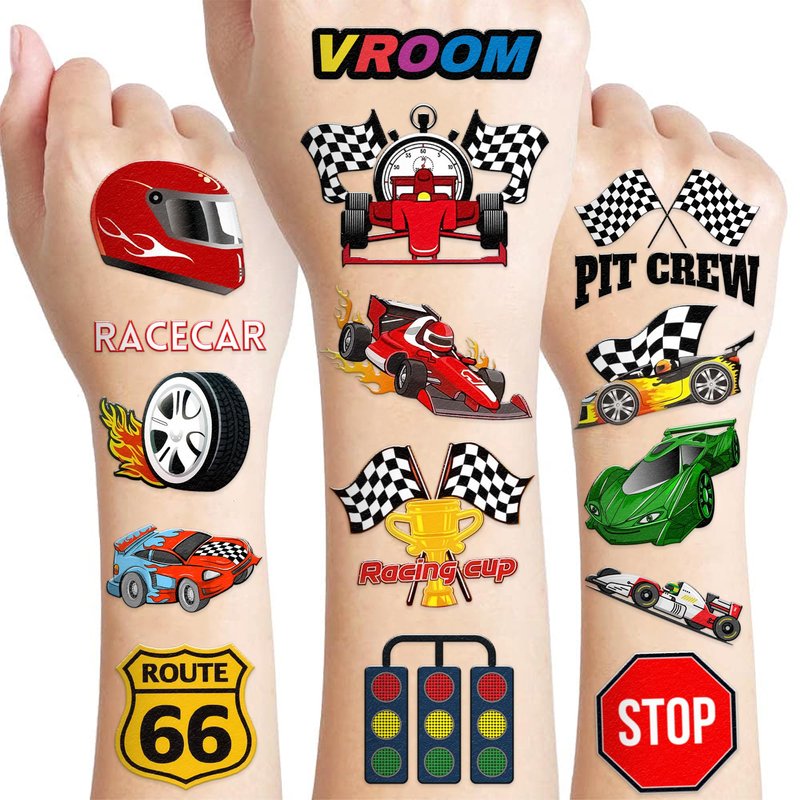 - 🏎️ [FUN GIFT IDEAS FOR RACE CAR BIRTHDAY PARTY DECORATIONS SUPPLIES]: RACE CAR TATTOOS perfect for themed party, outdoor parties, birthday parties, school rewards and other party events. RACE CAR TATTOOS are also interesting and lovely gifts for your children. Complement your unique collection with a RACE CAR tattoo!