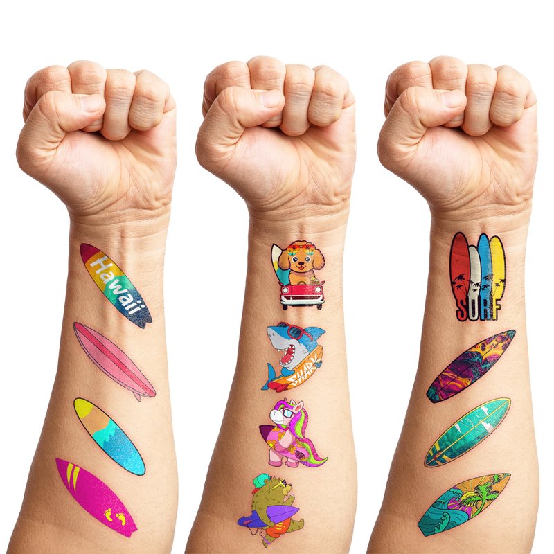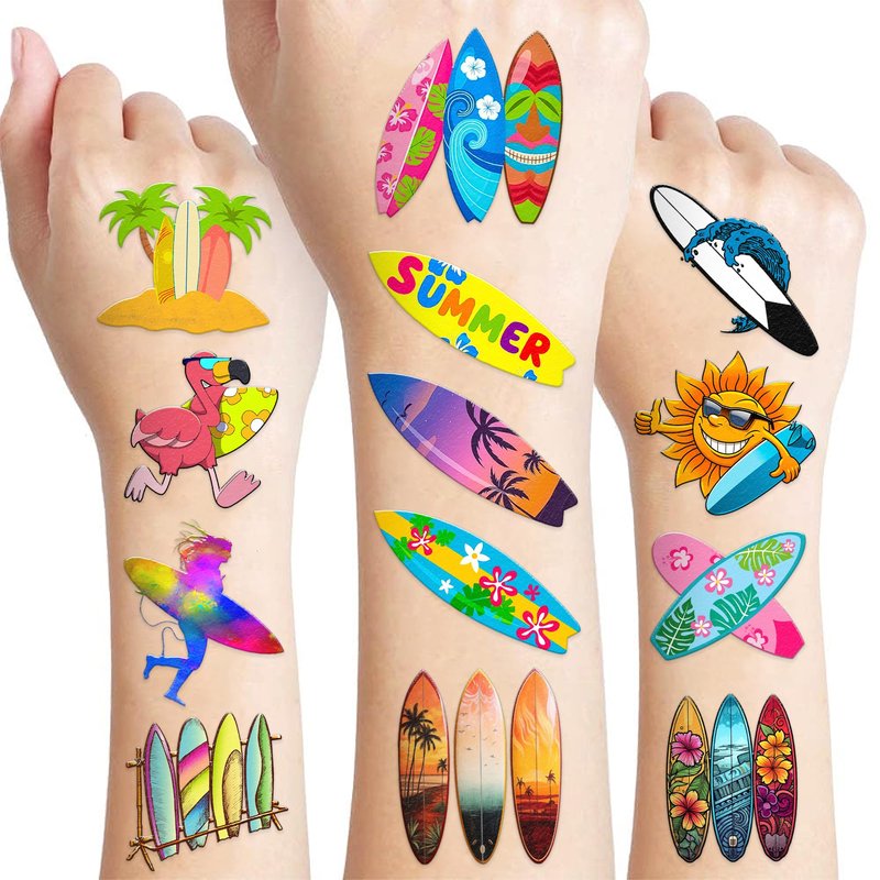 - π FUN GIFT IDEAS FOR SURFBOARD BIRTHDAY PARTY DECORATIONS SUPPLIES: SURFBOARD TATTOOS perfect for themed party, outdoor parties, including beach party, birthday celebrations, sporting events, birthday party, birthday parties, school rewards and other party events. SURFBOARD are also interesting and lovely gifts for your children. Complement your unique collection with a surfboard tattoo!