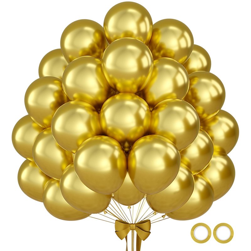 - FUNCTIONAL PARTY BALLOONS - Includes 110pcs 12 inch gold ballons, 2 rolls of ribbons and a manual.