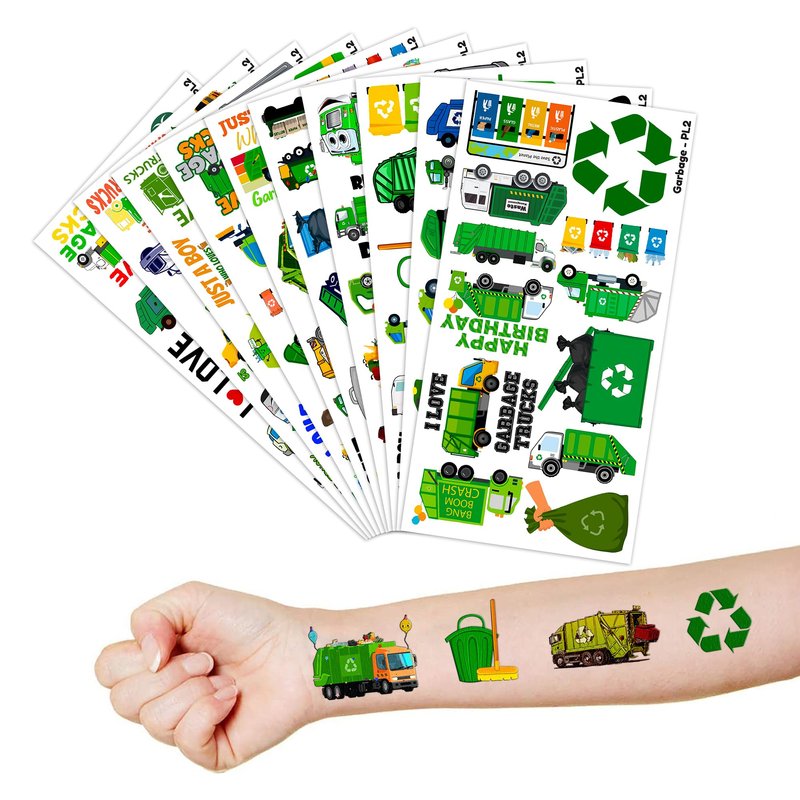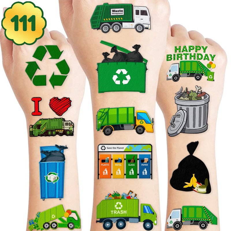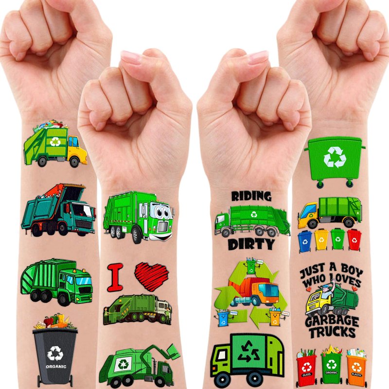 - Widely used: Garbage Truck Trash Cute Waste Management Recycling Temporary Tattoos pieces are suitable for many occasions such as birthday party supplies, party decorations, party favors, party bags, DIY decorations, pool and the beach or gift for kids and rewards. Kids temporary tattoos are the best party favors and goodie bags fillers ever for any kind of celebration!