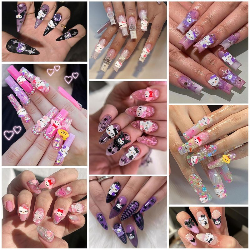 111 PCS Hello Kitty Nail Charms Nail Art Stickers Y2K Kawaii Nail Charms Slime Charms 3D Nail Art Charms Flatback Resin Charms…
