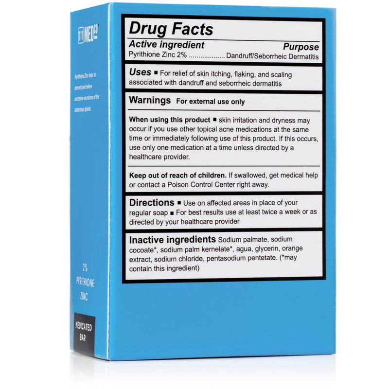 - OUR ZINC BAR is formulated with maximum OTC strength zinc pyrithione 2% for the control and reduction of the symptoms of dandruff and seborrheic dermatitis. 2% pyrithione zinc has been well-studied for many years and is supported by the dermatology community.