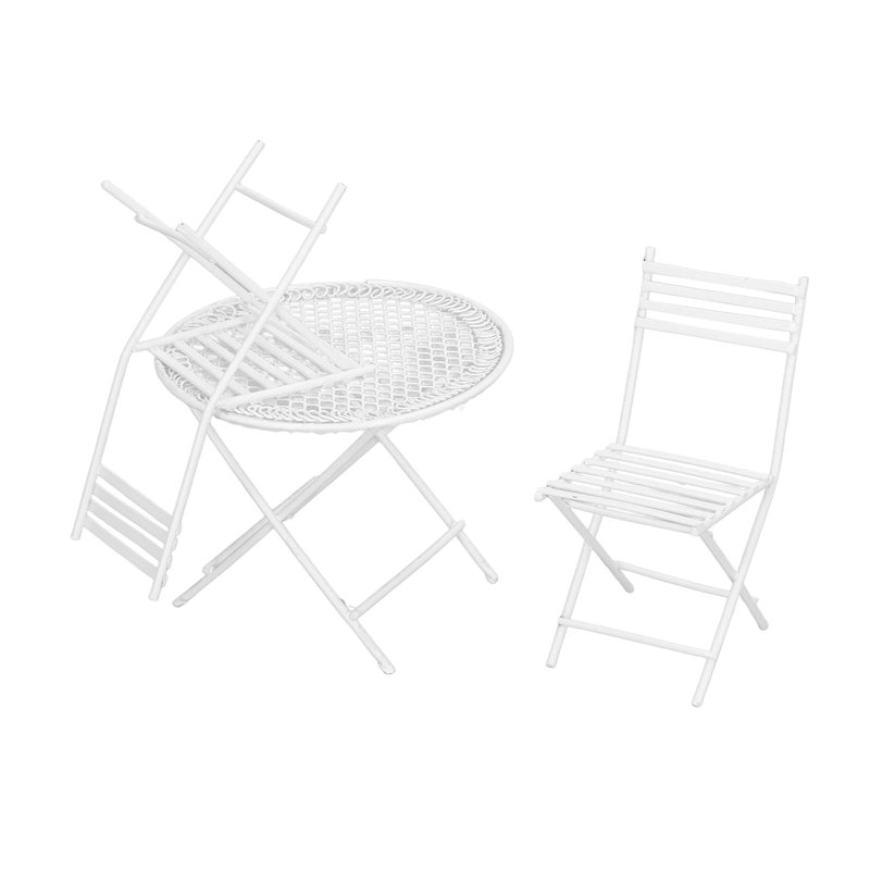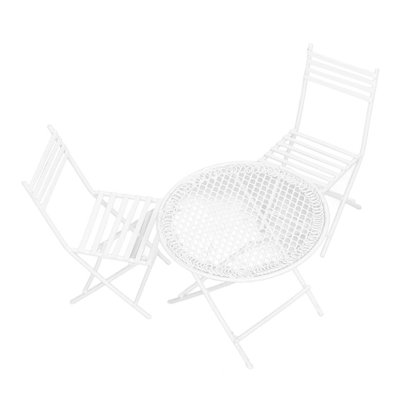 1:12 Dollhouse Garden Table Chair Set,White Miniature Patio Bistro Furniture,Dollhouse Decoration Accessory