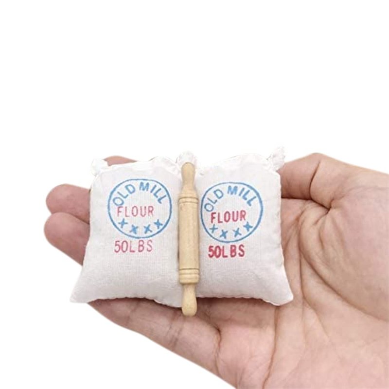 1:12 Scale Kitchen Food Accessories Miniature Flour Bag and Rolling Pin Candy Food Model Pretend Play Bread Making Set Set Dollhouse Ornament Mini Scene Accessories Restaurant