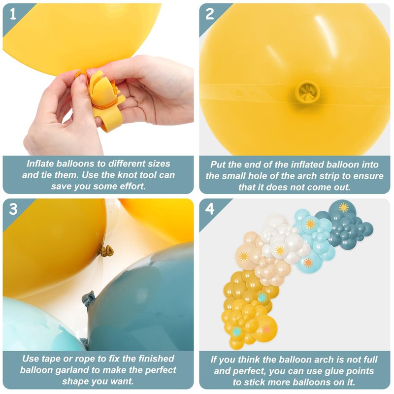 - Premium Quality - Sun cutouts are made of thick cardstock and printed with vivid colors. The balloons are made with natural latex and every balloon has been rigorously tested and selected manually, can be filled with air, helium. The balloon tools can make the balloon knot quickly, easy to stick together, and form an amazing boho theme balloon arch, release your hands, and prevent soreness!
