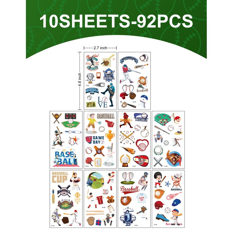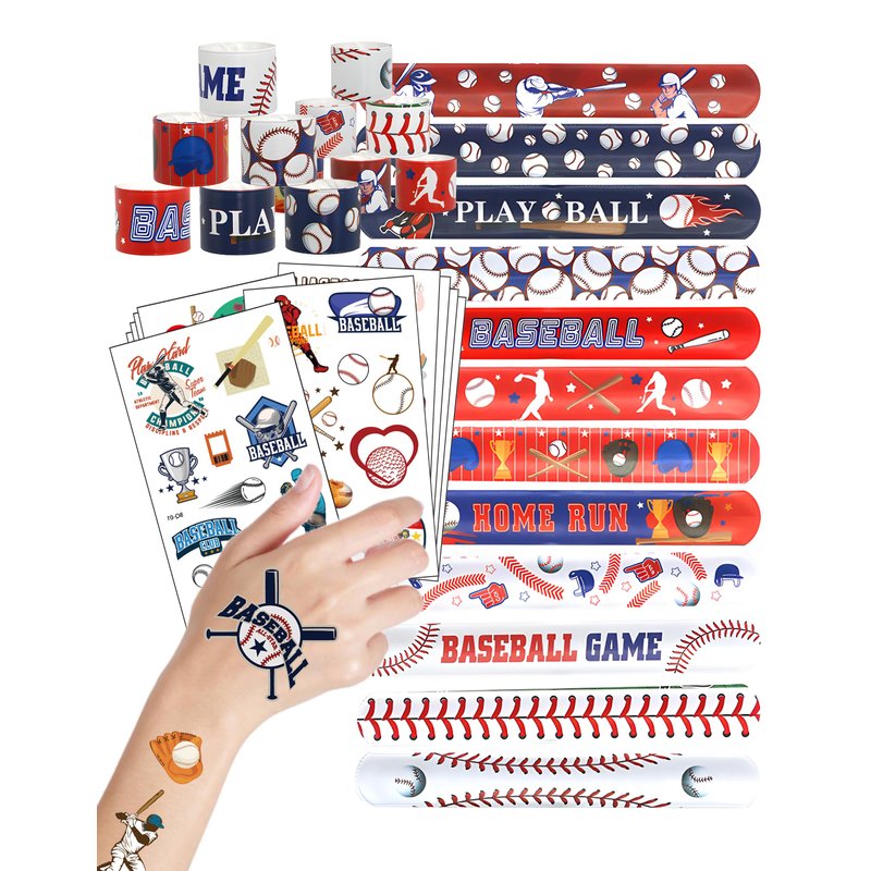 - BASEBALL PARTY FAVORS DELIGHTFUL BUNDLE: Get set for a rollicking Baseball fiesta with our spectacular set! t features 24 slap bracelets wristbands and 10 sheets of 92 temporary tattoo stickers. Each item flaunts a vivid, charming design inspired by the thrilling baseball realm. Ideal for all ages, this bundle unleashes boundless fun. The bracelets, measuring 1.2inches x 8.7inches, offer a satisfying "slap" and fit snugly on your wrist.