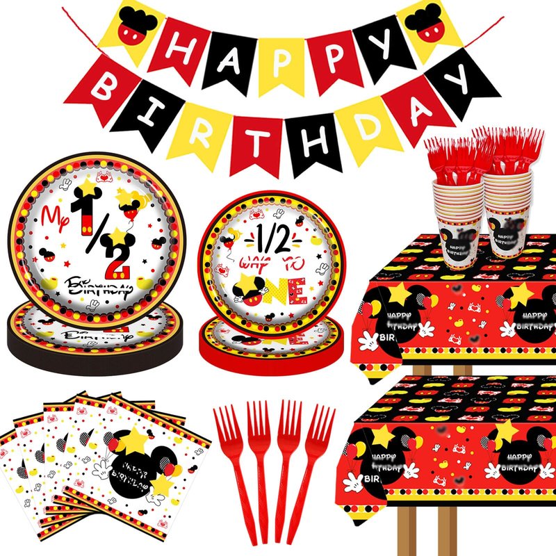 - Widely used: This adorable dessert plates, napkins, cups and forks tableware set is suitable for a kid's birthday party or relative theme party and recommended for baby shower boys 1/2 way to One birthday parties