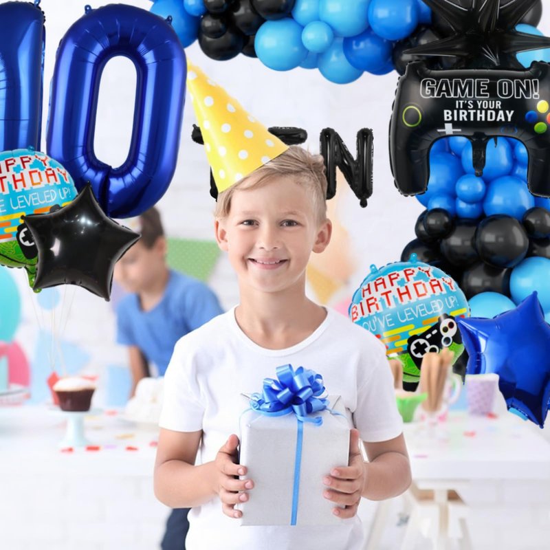 - 【Package Included】2pcs round balloon(18in), 2pcs Starburst balloon(22in), 2pcs Pentagram balloon(18in), 1pcs video game balloon(27in), 1pcs number balloon(40in), 3pcs Letter balloon(16in).
