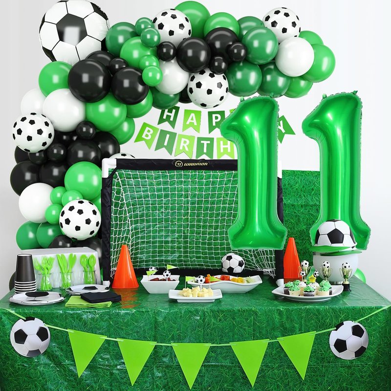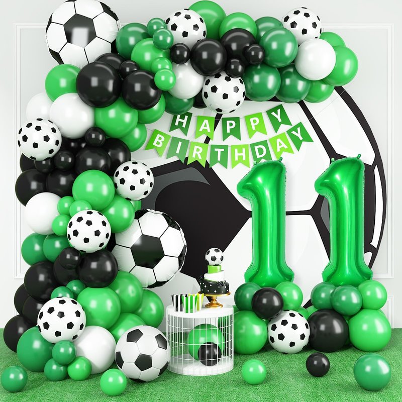 - GREAT FOR SOCCER THEMED CELEBRATIONS:This soccer balloon garland kit is perfect for 11th birthday parties for boys and girls, soccer-themed events, baby showers, sports celebrations, and more. Perfect for soccer birthday decorations, these green and white balloons will make your kid's 11th birthday party decorations vibrant and fun.