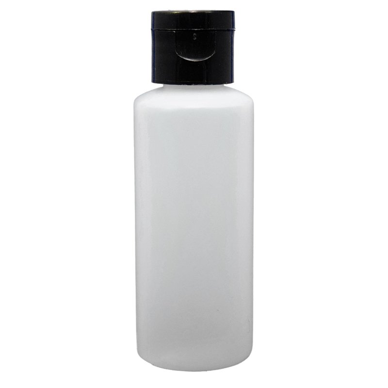 HDPE 2oz Bottles with Black Flip Caps with Natural Colored Bottles to easily identify whats inside.