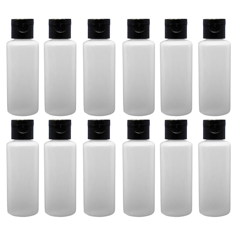 12-2-ounce Travel Bottles with Flip Caps (Black Cap)