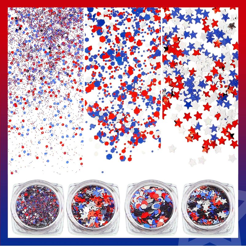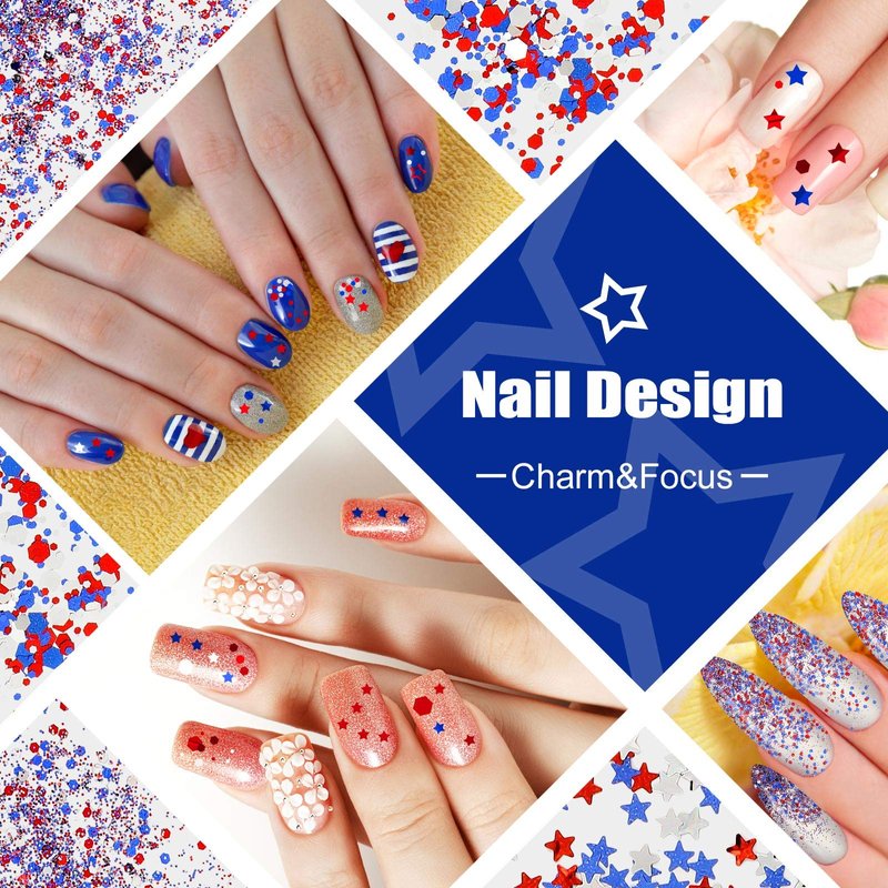 - Independence Day theme: glitter star and hexagon shapes with beautiful color can make your nails more charming and eye-catching, mixed festival colors provide you with many options to match, adding more festival atmosphere for you on Independence Day