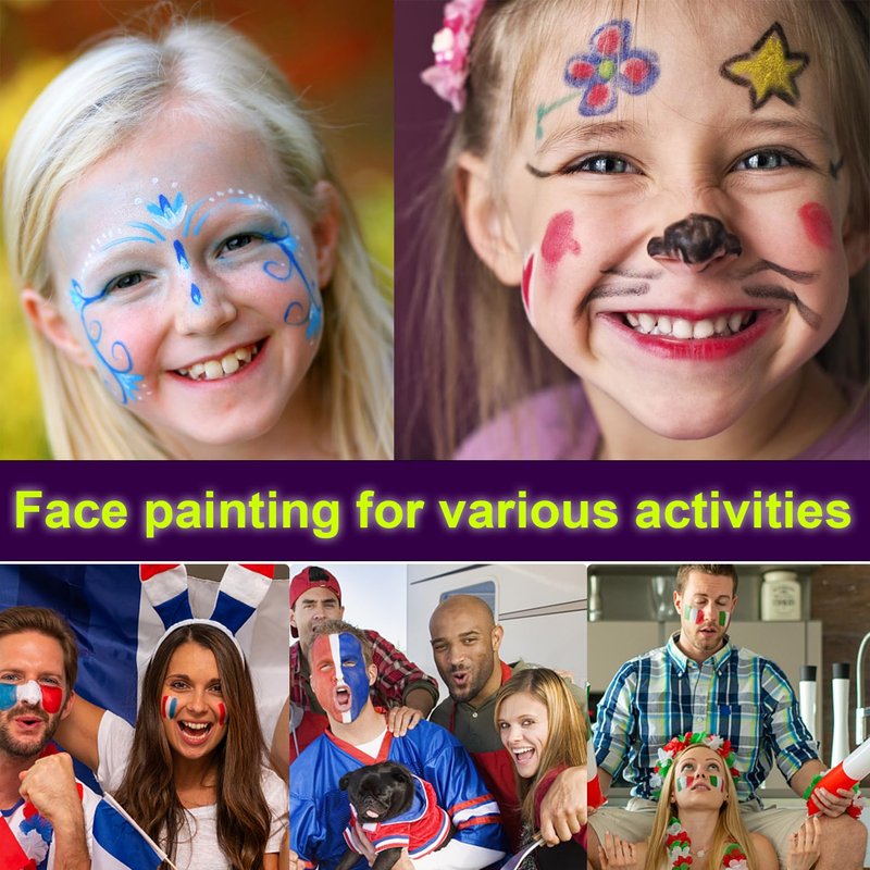 - [12 DIFFERENT COLORS]:Face painting set includes 12 colors of crayons for face and body painting pens. The many colors will allow you more creative space to meet your multiple character needs.