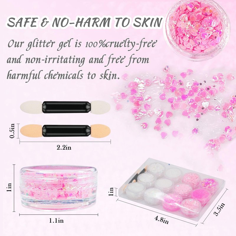 - ✅ 【Safe and Gentle】The body glitter gel is made of non toxic material and gentle material, not irritate on the skin.It can be used on the eyes,face,eyebrows, lips, cheeks, face, nails, hair,collarbone,face glitter for kids or any part of your body,you can use it with complete confidence.