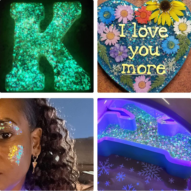 - Wide application chunky glitter pigment can used for makeup, crafts, nails design and DIY resin project, such as crafts making, paints, resin epoxy, jewelry making, epoxy tumbler, slime making, body painting, face painting, nail arts,eye makeup, hair styling, mobile phone's case, greeting cards, festival ornaments,halloween party makeup and so on.