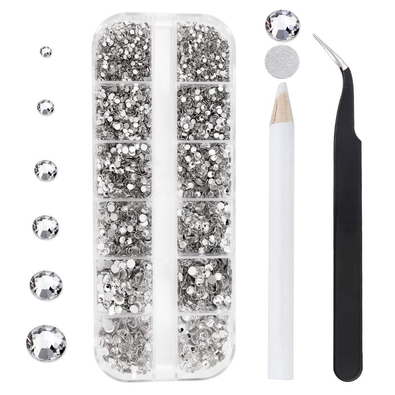 - 💎PREMIER RHINESTONE SET: A gemstones and crystals come with everything you need to make your special project shine. There are tweezers and a picking pen included with these rhinestones for crafts, so you can start crafting immediately! Rhinestones for nails includes:SS6 2MM - 1440pcs, SS8 2.4MM - 960pcs, SS10 2.8MM - 676pcs, SS12 3MM - 476pcs, SS16 4MM - 144pcs, SS20 4.8MM - 96pcs. Total is 3792pcs.