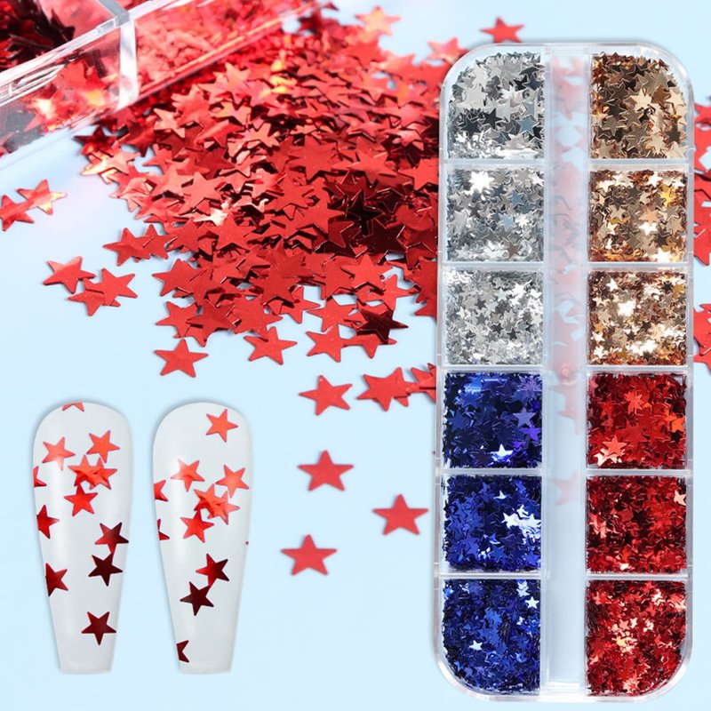 - Wide Usage: 4th of July nail sequins can be used on nails, eyes, face and any part of the body as body glitter to give you more sparkling effects. Also perfect for decorate phone case, books, wallets, shoes, greeting cards, mirrors, DIY crafts, etc.