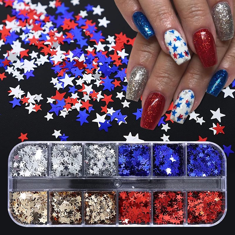 Quantity: 12 Grids Patriotic Nail Glitter Sequins