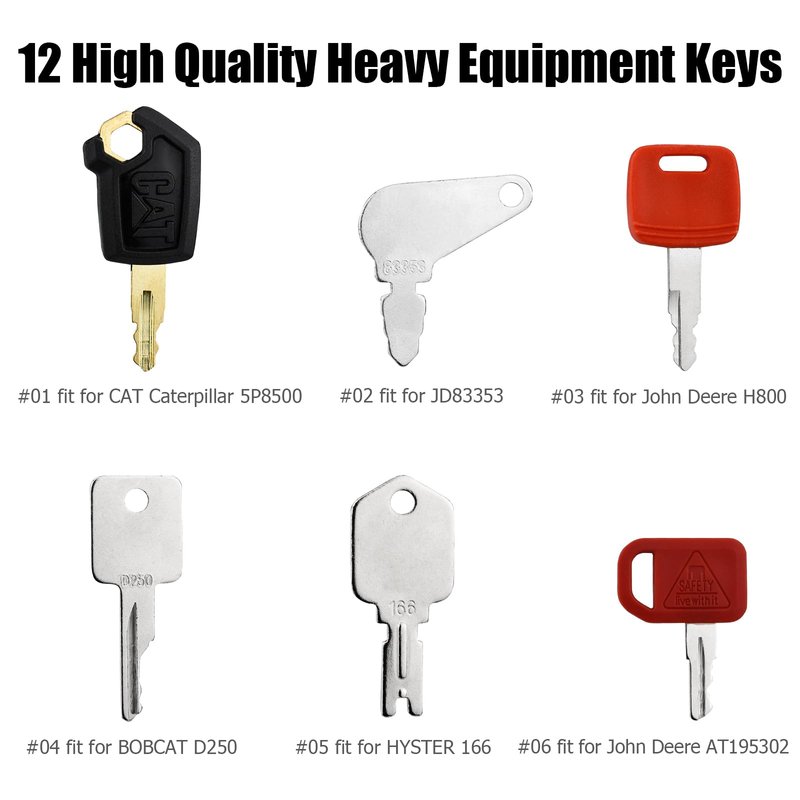 - 【Equipment Keys】12PCS heavy equipment keys master set construction ignition key operator keys for excavators, loaders, backhoes, tractors, dump trucks, bulldozers and many more heavy equipment.