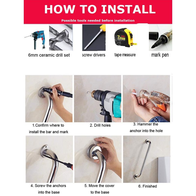- Safety grab bars in the bathroom, kitchen, along stairways, or in the laundry room for additional fall prevention, especially for the handicap, elderly, pregnant women, and children. Not only apply to use as bath shower grab bar, but also can hold clothing,etc.