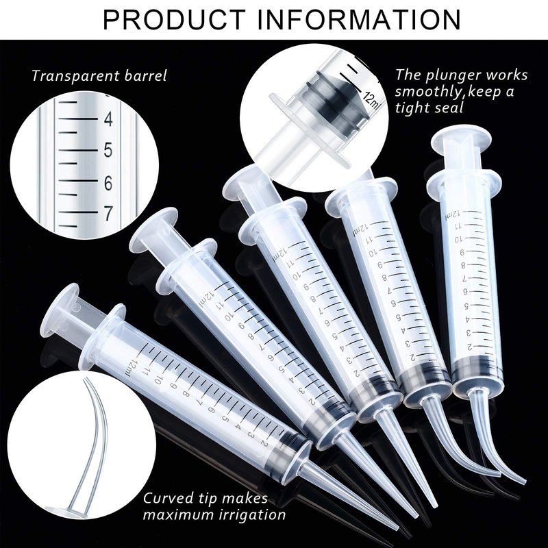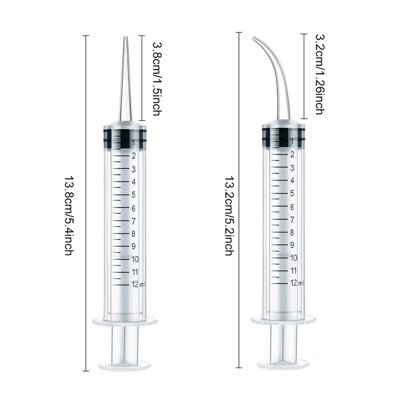 - Package content: there are 20 pieces of dental syringes in total, including 10 pieces of syringes with curved tip and 10 pieces of syringes with straight tip; Each syringe with a capacity of 12 ml; Enough quantity for your daily use, replacement and sharing with family and friends