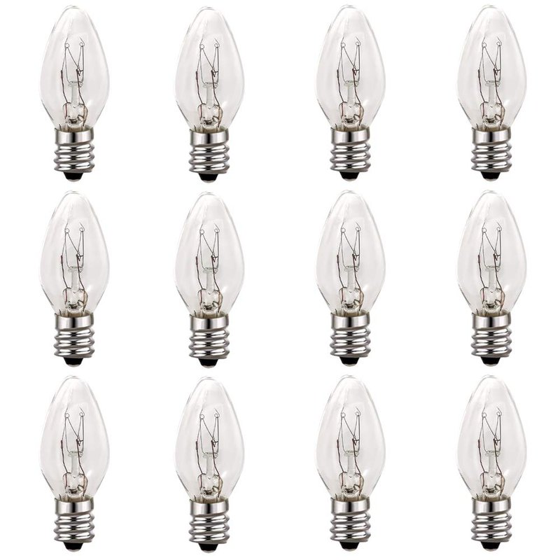 - NIGHT LIGHT BULBS: 12 Pack - 120 Volt - Dimmable - Warm White - 15 Watt salt lamp replacement bulbs fits any E12 socket. Purchasing this convenient multi-pack small light bulbs are the best choice for your to save time and money.