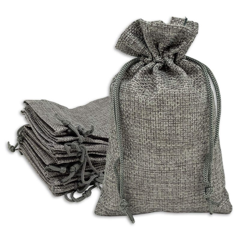 12-Pack 4x6 Natural Burlap Gift Bags w. Drawstring (Cool Grey, Small) for Party Favors, Presents or DIY Craft by TheDisplayGuys