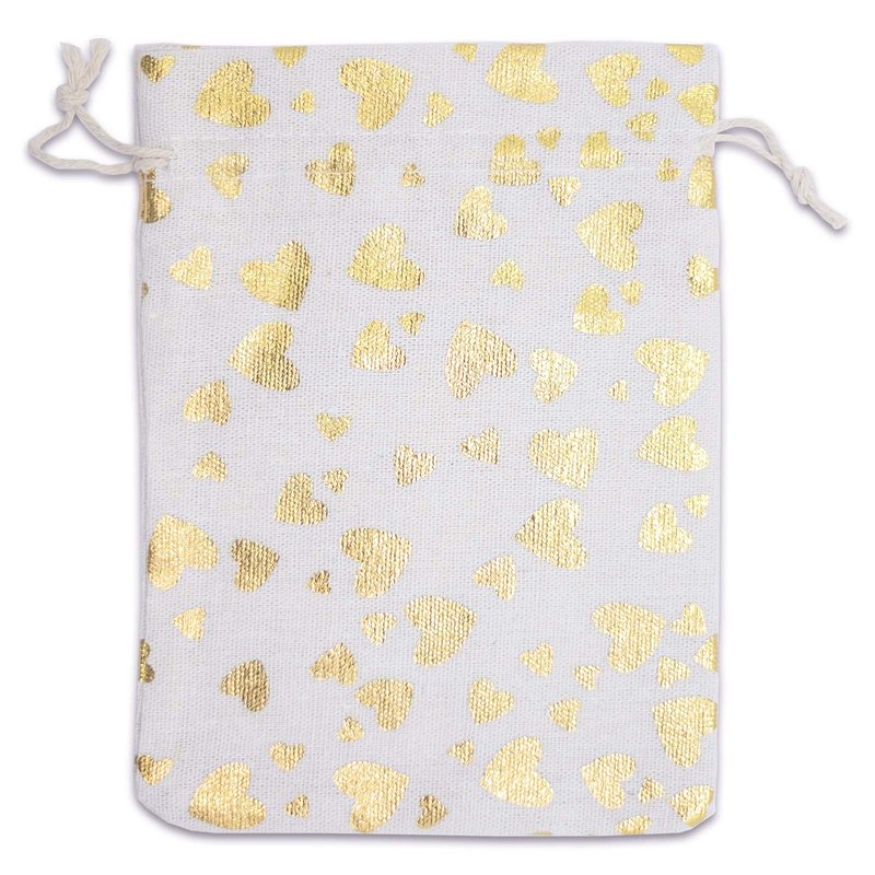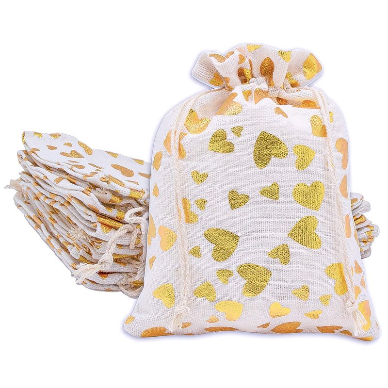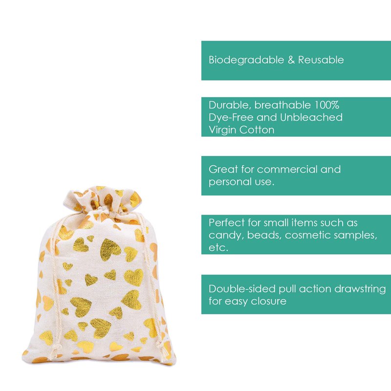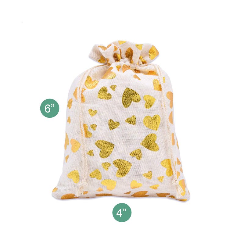 12-pack - 4x6 Reusable Cotton Canvas Muslin Gift Bags w. Drawstring for Presents, Party Favors, Samples (Golden Hearts, Small) by TheDisplayGuys