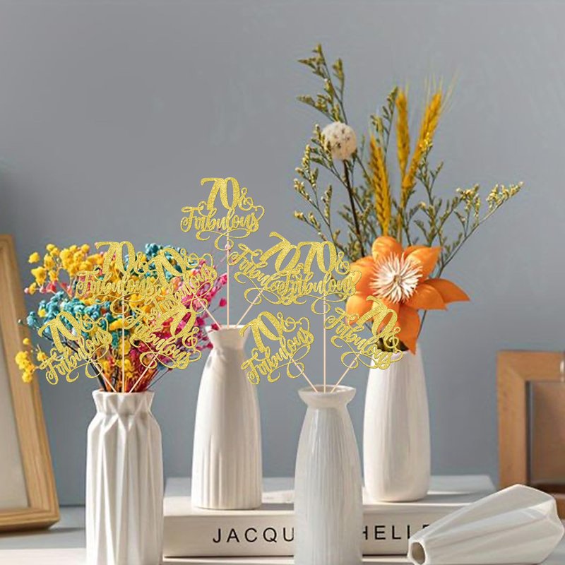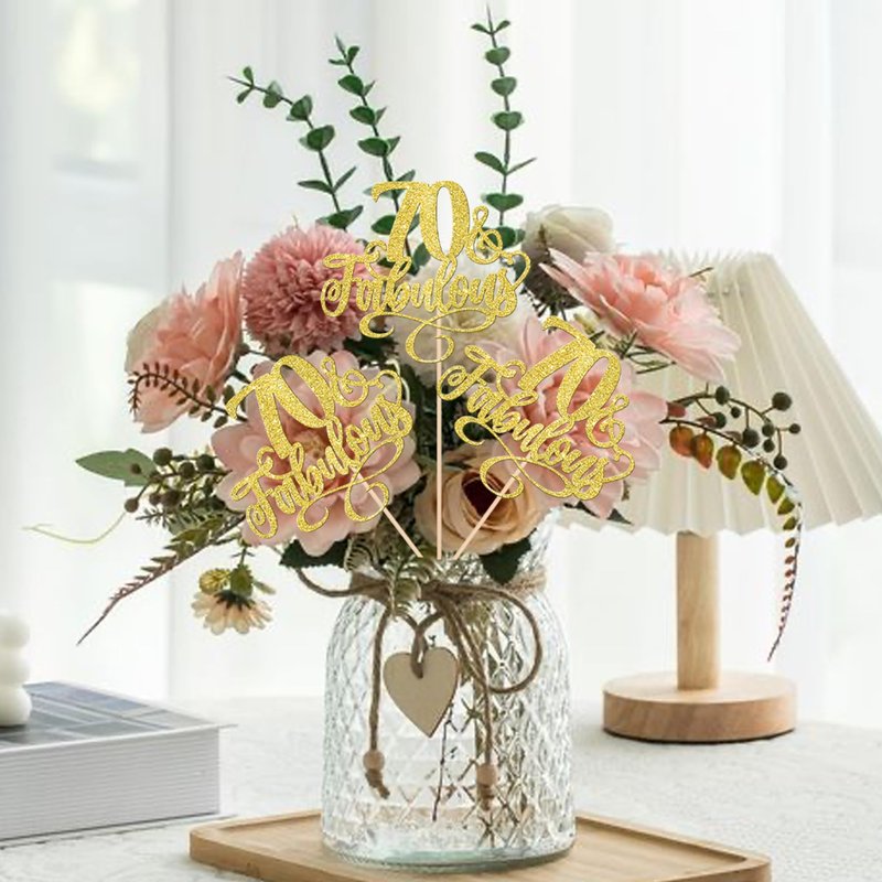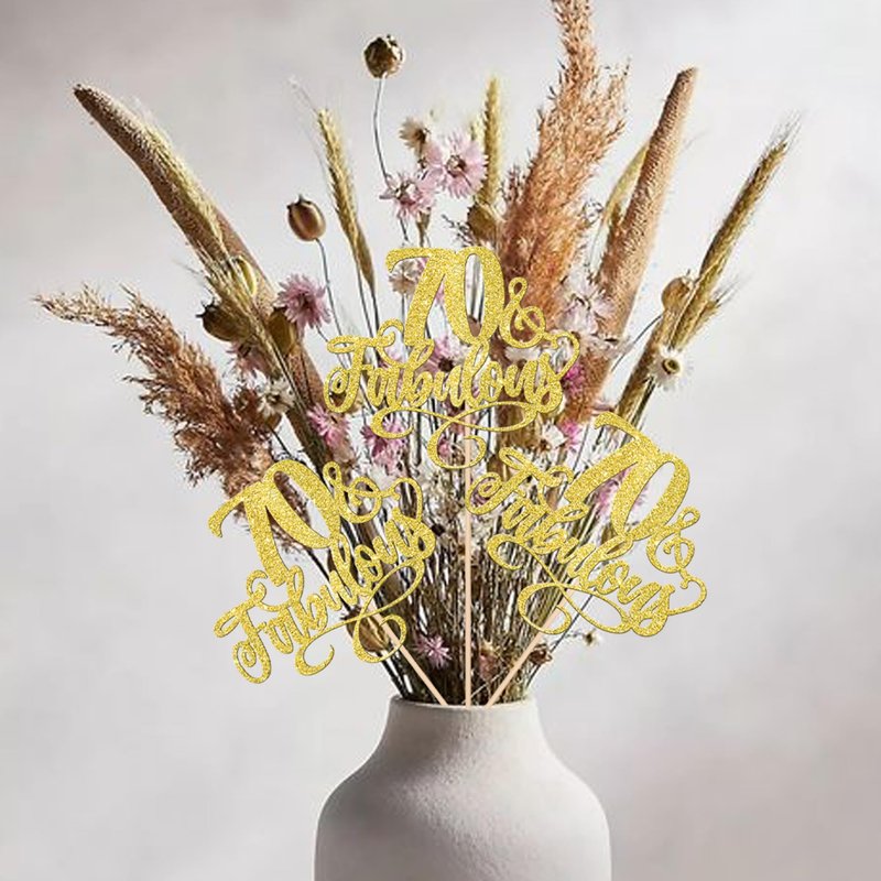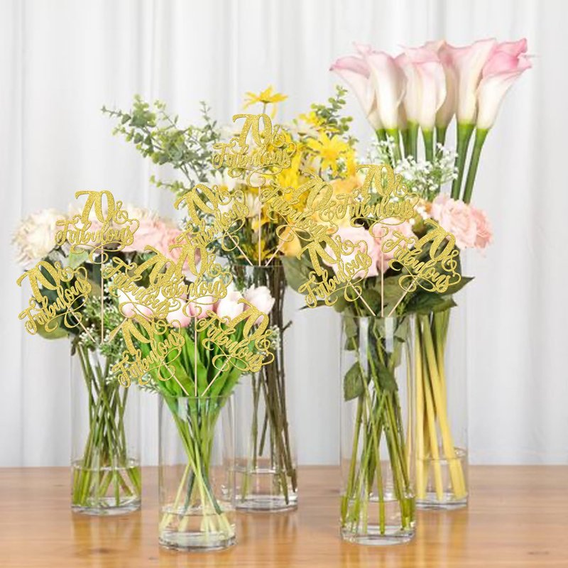 12 Pack 70 & Fabulous Centerpiece Sticks Assembled Glitter Seventy and Fabluous 70th Birthday Table Centerpiece Sticks for Cheers to 70 Years Old 70th Birthday Theme Party Supplies Gold